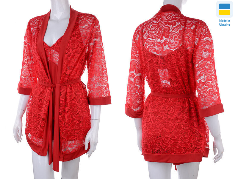 | Коментарі (доп. опис) | Халат гипюр Длина 74см., Бедро 50см., Ширина плеча 42см., Шорты Длина 27см., Талия 28см. |